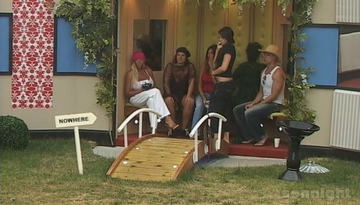 With evening upon both houses, the drama would begin. In the main house, the Housemates are gathered on the sofas in the living room, whilst next door Aisleyne is called to the Diary Room whilst Spiral and Jonathan sit on the House Next Door sofas. On the plasma screen in the main house, Jennie and the other Housemates can only watch as the evnts unfold. Big Brother informs Aisleyne that Jennie, Jayne, and Michael are in the main house, leading to smiles from Jennie and most of the other Housemates.