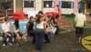 potential evcitees, Lea and Richard. They sit in the garden and eat dinner,