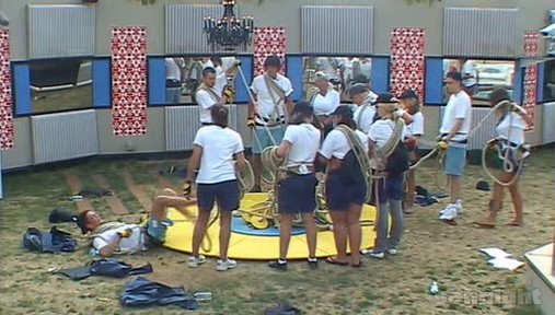 Big Brother gathers housemates in the garden at 5.47pm for this weeks shopping