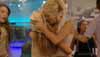 After getting up, the two share a hug.