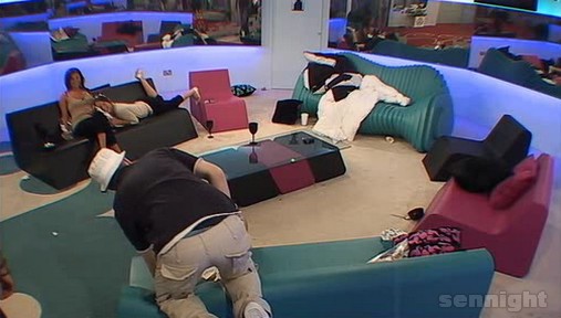 2.55am. All the housemates are in the bedroom. Jennie, Aisleyne and Spiral whisper and giggle. Jayne gets angry and tells them to be quiet, but Spiral argues back.