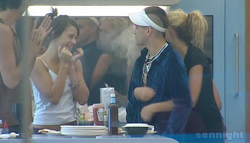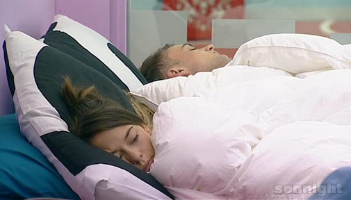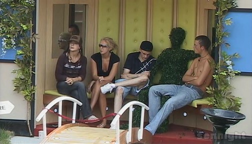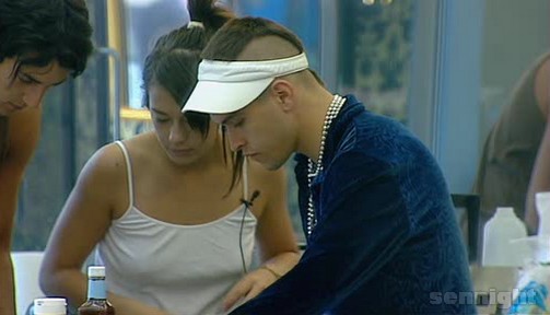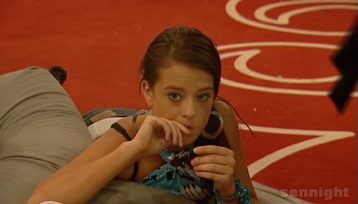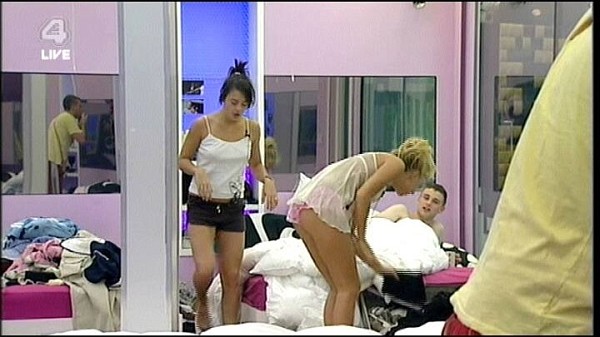 Nikki and Imogen talk about Jennie in the lounge. Nikki says Jennie fancies Pete and that its "f***ing obvious". She moans about her sitting on his lap. Imogen then says that Jennie has a boyfriend and Nikki pulls a face and says that shes gonna keep announcing the fact that Jennie has a boyfriend to the whole house.