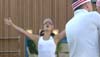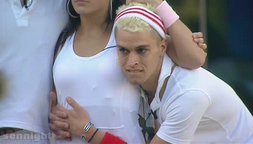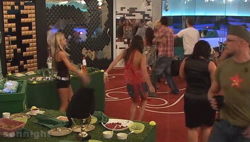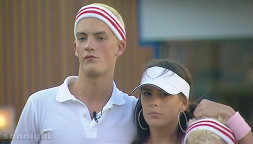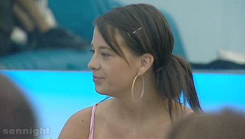 Jennie watches the other housemates (while cuddling Glyn and Pete). She supports housemates by cheering and clapping as bb serves the balls.
