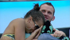 Aisleyne and Jennie cuddle in bed.